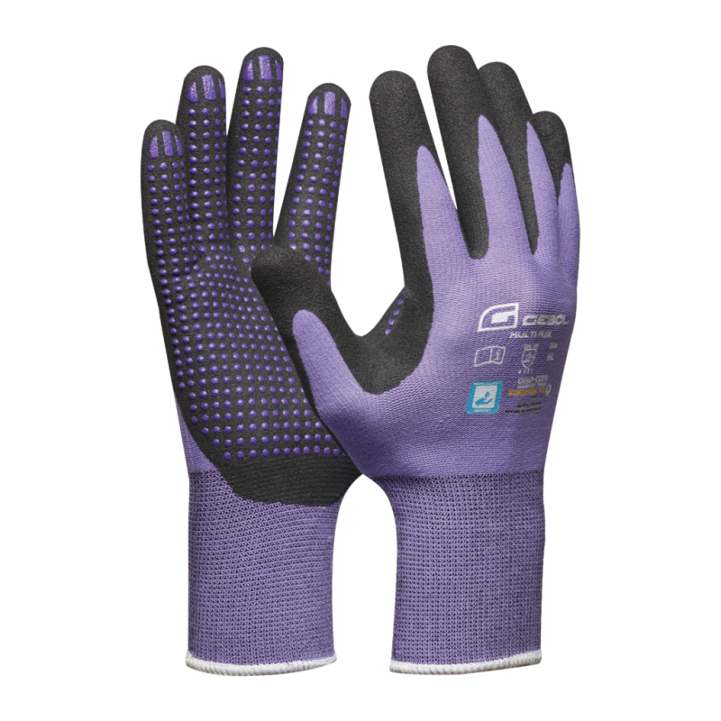 Ženské ruky potrebujú osobitnú ochranu, pokiaľ ide o prašnú a špinavú prácu. Vďaka robustnosti, pohodliu a priedušnosti je Gebol Multi Flex Lady všestranným pomocníkom medzi pracovnými rukavicami. Bezšvíkové, dermatologicky testované montážne rukavice s nitrilovým mikropenovým povlakom a nitrilovými gombíkmi na dlani sú ideálne pre práce vyžadujúce citlivosť, ako sú napríklad opravy, montáž, stolárske práce a precízne práce. Vďaka svojmu obzvlášť vysokému komfortu nosenia a priedušnému povlaku chráni Multi Flex Lady pohodlne a ľahko ako druhá pokožka.