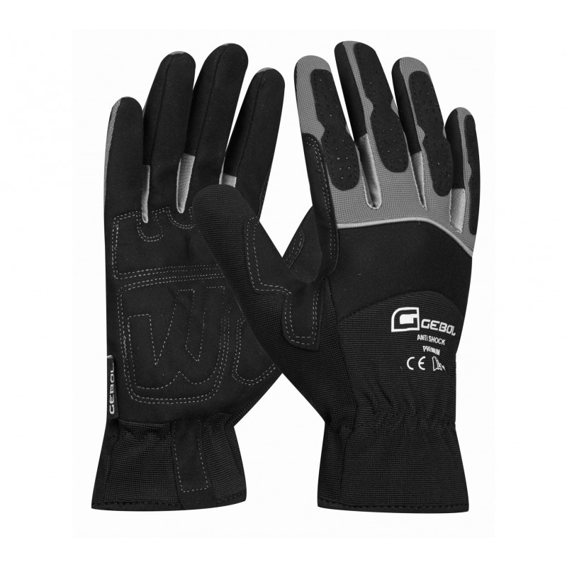 Pracovné rukavice Gebol Anti Shock, vysokokvalitná profesionálna kvalita s elastanom / syntetickou kožou a vinylom, vystužená a vystužená vnútorná ruka, tlmenie vibrácií s pružnými rukami, vysoký stupeň pohodlia pri opotrebovaní a vysoká odolnosť proti oderu.