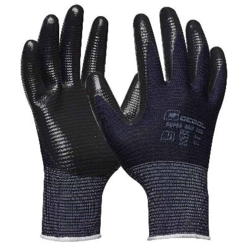 Gebol Super Grip Eco, bezšvové montážne rukavice s hustým a robustným nitrilovým poťahom na dlani, sú vhodné najmä na ľahké opravárske práce a činnosti vyžadujúce dobrý úchop. Super Grip Eco je obzvlášť účinná na mokrom povrchu vďaka drážkovanej nosnej tkanine. Super Grip Eco sa vyznačuje dobrým prispôsobením.