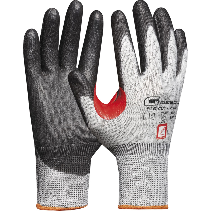 Bezšvové montážne rukavice z vlákien odolných voči prerezaniu s polyuretánovým povrchom na strane dlaní. Dodatočné zosilnenie v oblasti palca a ukazováka pre dlhšiu životnosť. Dobrá zručnosť na prstoch.