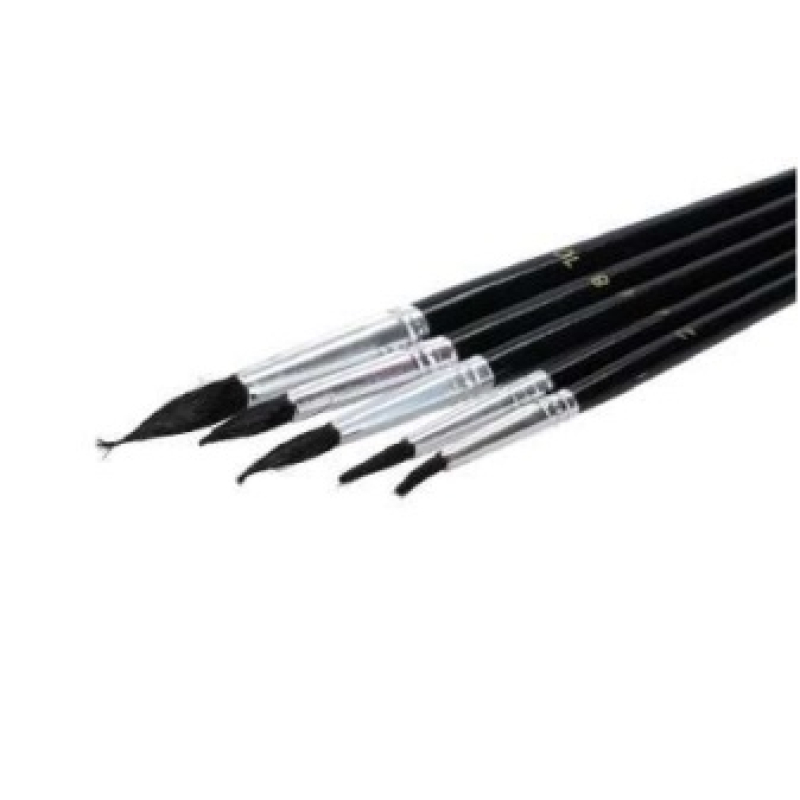 Praktická sada retušovacích štetcov z prírodných štetín, na veľmi drobné a presné opravy defektov laku, s čiernymi štetinami, kovovým uzáverom a čiernou lakovanou rukoväťou. Perfektné na bodové nanášanie laku tak aj na odstraňovanie malých poškodení