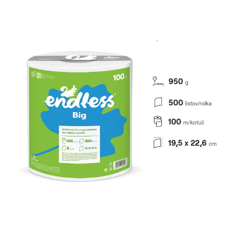 2 - vrstvová odolná papierová utierka, ktorá nepúšťa vlákna. Spája v sebe savosť, jemnosť a takú dlhú výdrž, že je naozaj nekonečná. Pre všetky práce, kde treba používať utierky. Návin 100m, 500 útržkov.