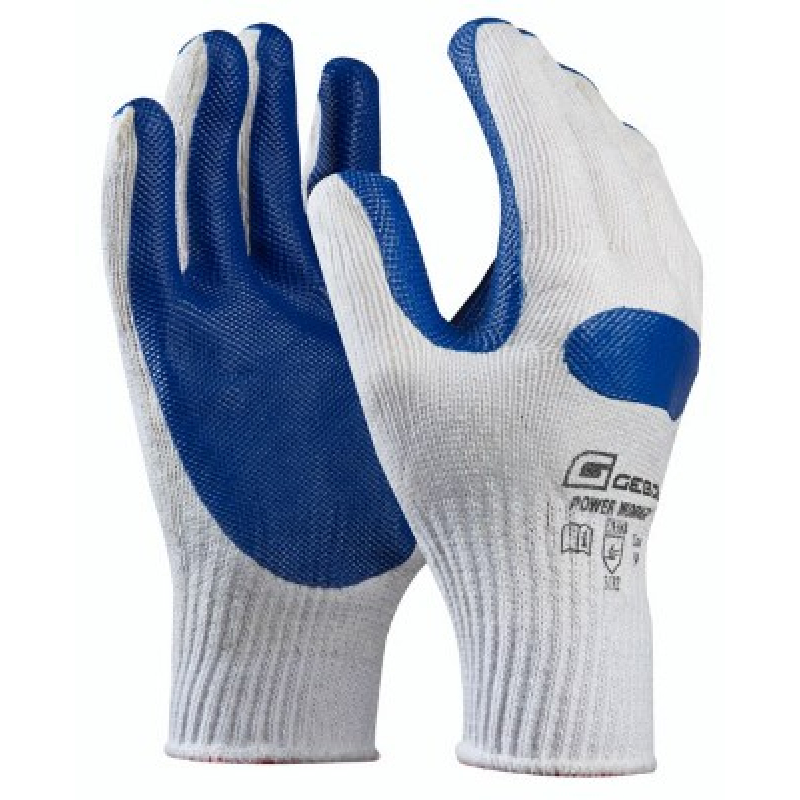 Gebol Power worker, hladké, veľmi robustné pracovné rukavice s profilovaným latexovým povlakom na dlani ruky, je veľmi odolný a je preto vhodný najmä pre hrubé a ťažké práce v stavebníctve a lesníctve. Štruktúrovaná, odolné proti vlhkosti.