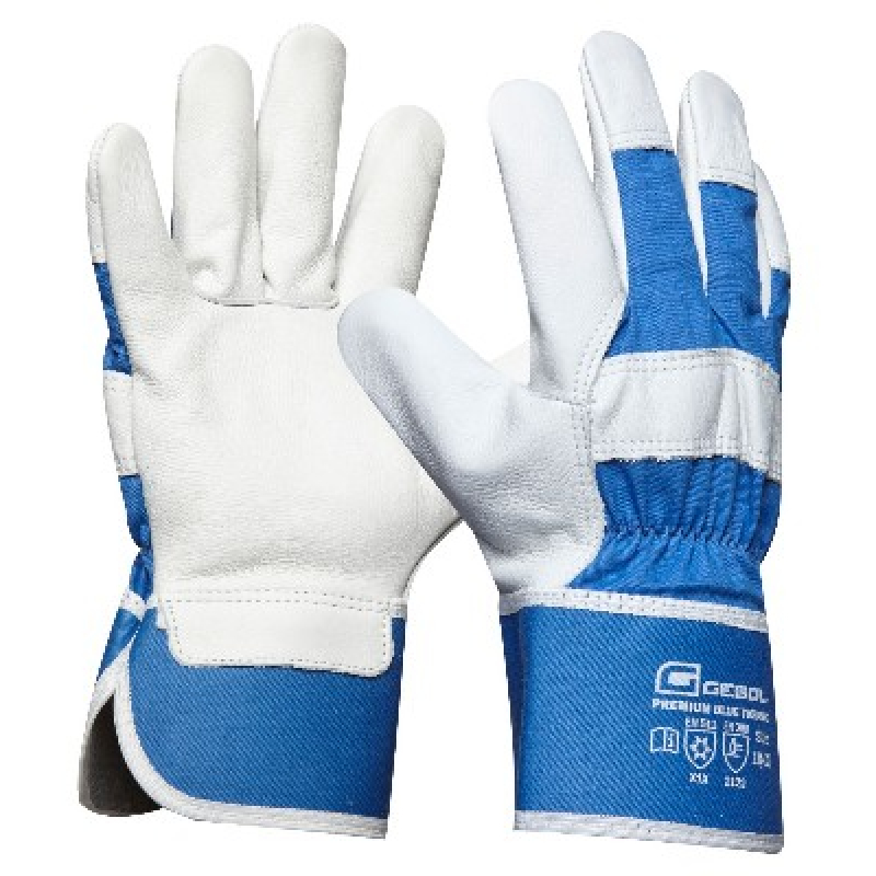 Pracovné rukavice Gebol Premium Blue Thermo; Prvotriedna kvalita, hrúbka kože približne 1,2 mm, plná kravská koža s dvojitým prešitím, tepelná výstelka na ochranu proti chladu, pogumovaná manžeta 8 cm.