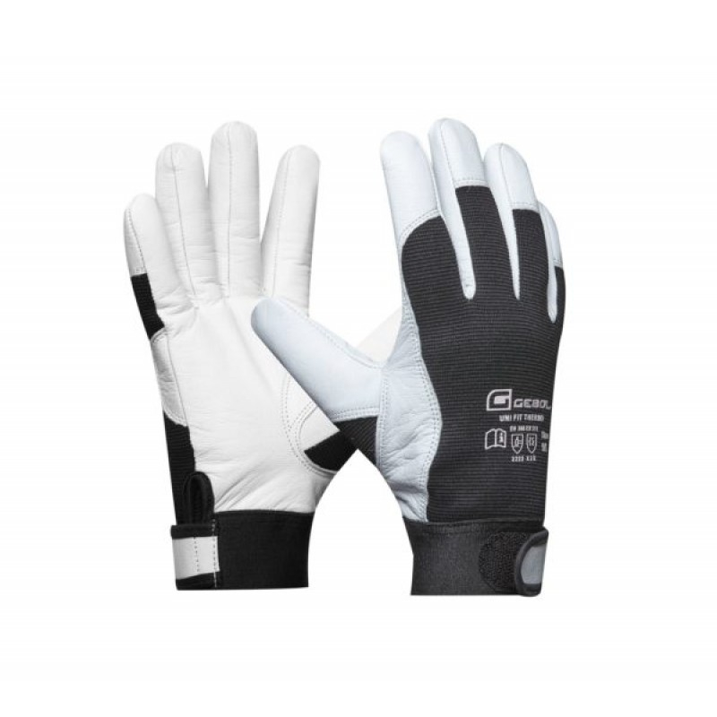 Klasické Uni Fit sú dostupné aj ako zimné pracovné rukavice. Uni Fit Thermo zaisťuje dokonalú izoláciu pred chladom vďaka podšívke Thinsulate. Kvalitná konštrukcia v prémiovej kvalite z kozej kože so strečovým spandexom zvyšuje komfort nosenia a strih Uni Fit Thermo. Elastický pás so suchým zipsom je možné individuálne nastaviť a zabraňuje tak prenikaniu snehu a ľadu. Uni Fit Thermo je obzvlášť vhodná na outdoorové aktivity pri nízkych teplotách.